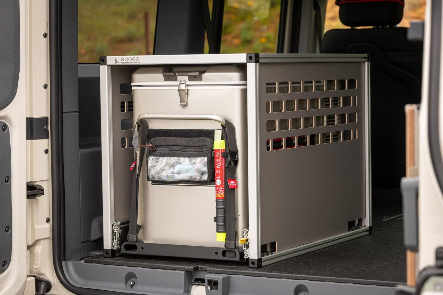 The Goose Gear IceBox 1.2 contains a complete fridge slide integrated into a Goose Gear Module. It features a 100% extension fridge tray with Lock-In/Lock-Out capability. With the Goose Gear IceBox, you can safely store gear on top of your fridge and still have complete access without having to unload your gear to access your food.
