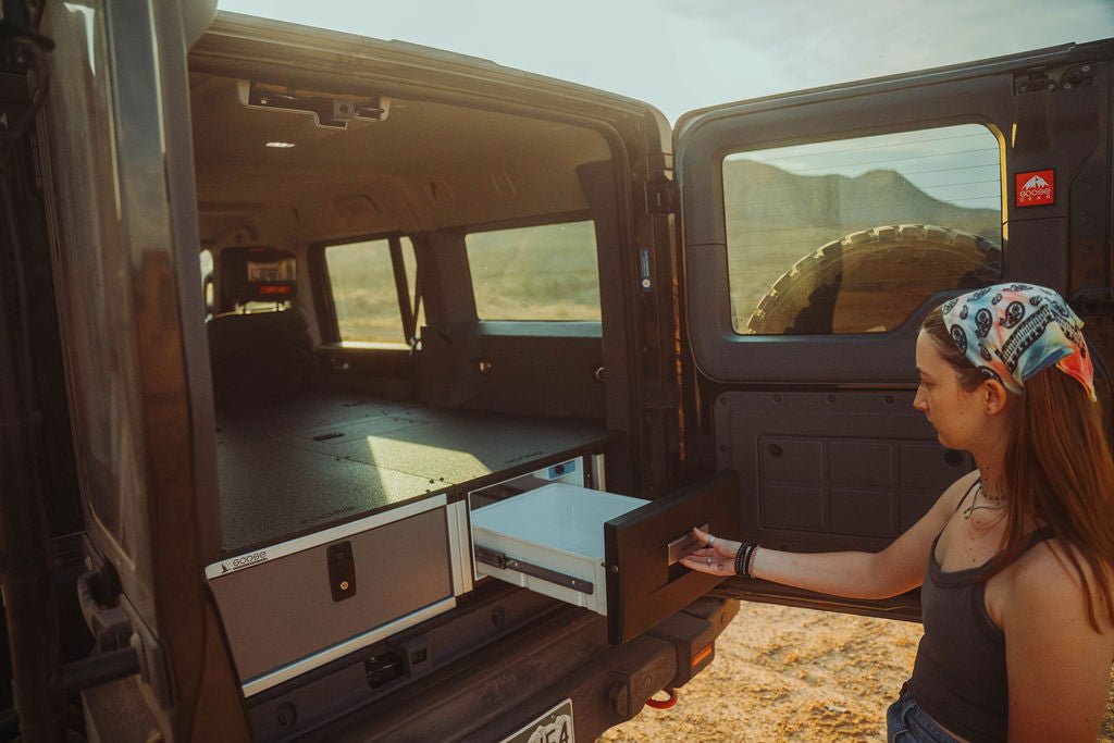 Turn your Ineos Grenadier into the ultimate adventure-ready vehicle with our Stealth Sleep & Chef Package, built for comfort, storage, and convenience. This package offers space for two people to sleep while providing abundant storage and a built-in fridge for extended trips.